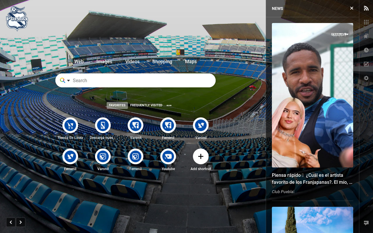 Personaliza tu navegador con tu Fondo de Pantalla favorito, elige tu buscador preferido y tus sitios web que más visitas (incluidas nuestras redes sociales). Apoya al Puebla y no te pierdas de nada solo con abrir una nueva pestaña.